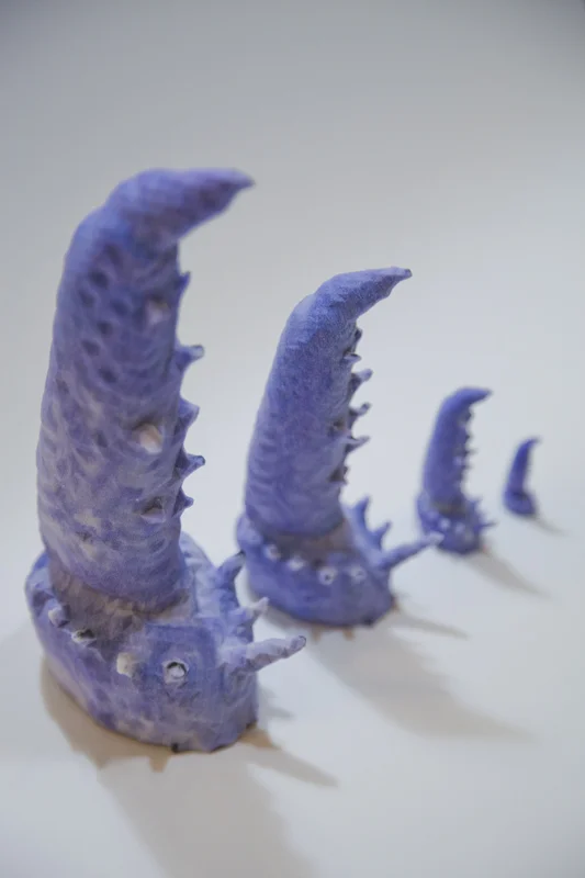 Collective unconscious features four objects that replicate the very tip of a garden slater’s leg printed in various sizes. Slaters are a terrestrial crustacean or Isopoda and only grow up to 17mm in length so their legs are tiny. Imagine how big the creature would become if the whole body was printed to the scale of each tip.